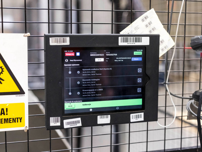 For this purpose, we use the IMES system, which has been tailored to the requirements of our organization. Each production station is equipped with a scanner that is used to read an individual barcode and a tablet on which all details about the product are displayed.